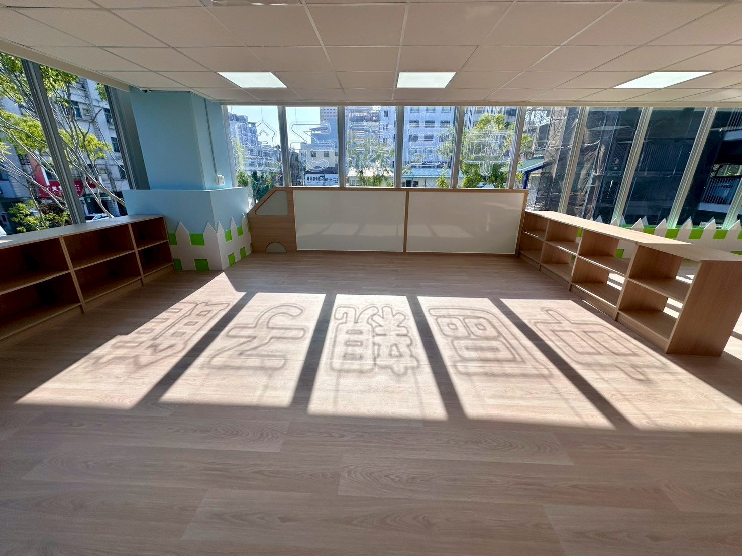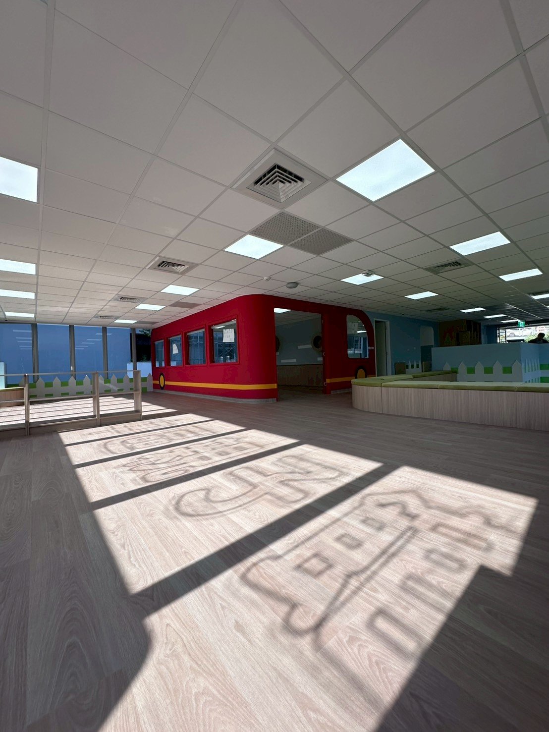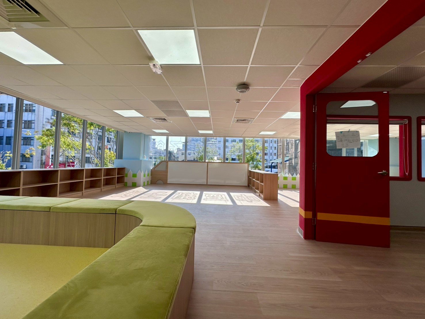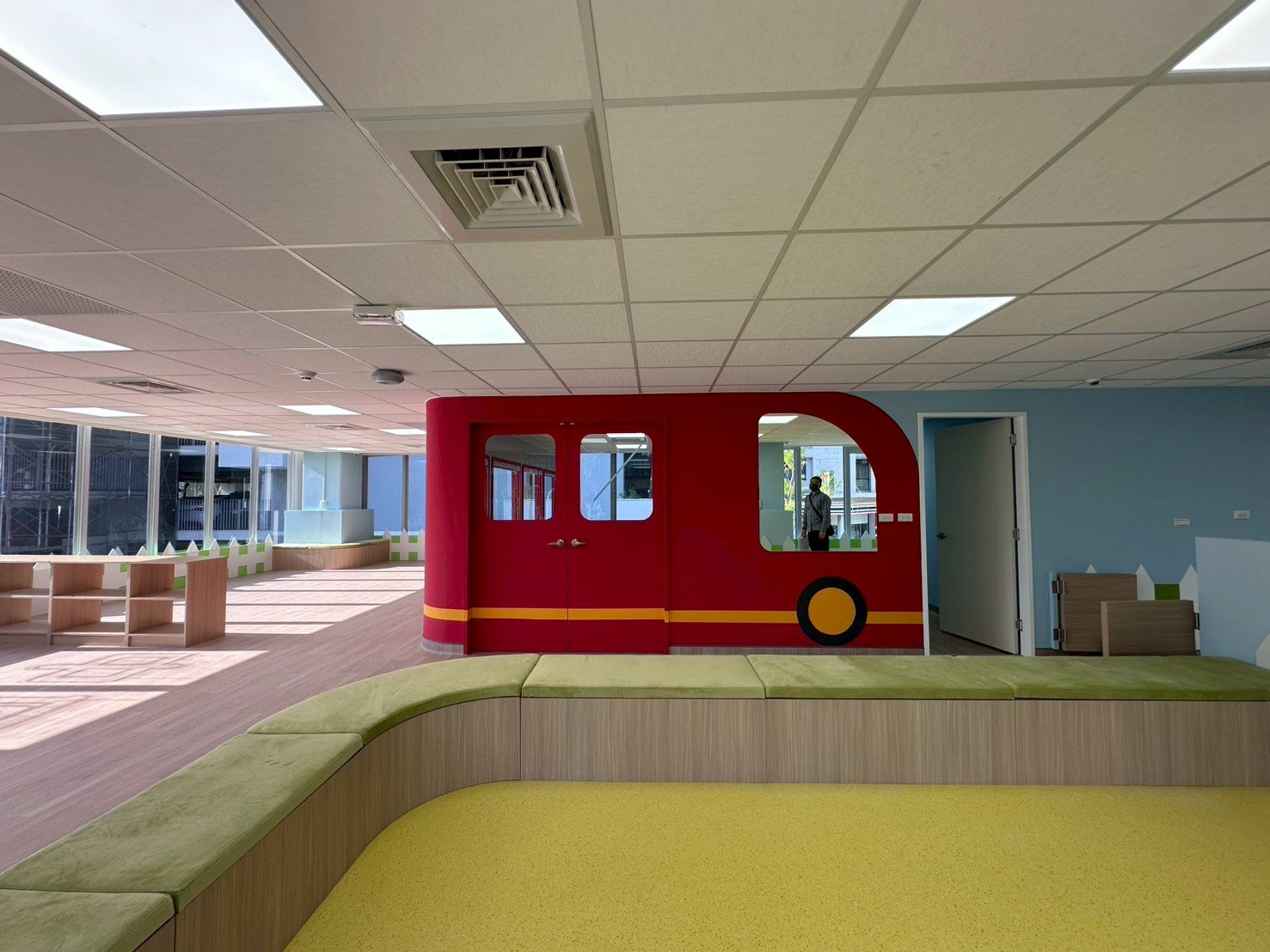 鋪陳溫潤柔軟的木紋地坪,回應孩童行走、翻滾與探索的身體尺度;活動式矮座椅巧妙界定0–2歲幼兒專屬區域,形塑清晰而溫柔的分齡動線,使空間在秩序中保有流動,在安全中孕育自由。